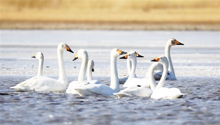 晶晶忍不住感嘆:“我和盈盈每次南飛或北遷,都要在沉湖‘打卡’,這個(gè)城市濕地已變成了小天鵝的‘會(huì)客廳’。前些年,這里可不好玩,用人類的話說(shuō),它‘曾經(jīng)滿目瘡痍,如今萬(wàn)鳥(niǎo)翔集、水草豐美’?!?/p>