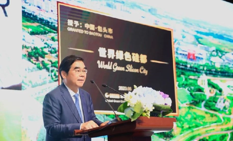 國際太陽能光伏與智慧能源大會是全球規(guī)模最大、最具影響力的專業(yè)化國際化光伏盛會,對于世界能源變革、全球生態(tài)環(huán)境改善具有重要引領(lǐng)作用。丁繡峰代表市委、市政府向大會的召開表示熱烈的祝賀,向所有關(guān)心支持包頭發(fā)展的企業(yè)家、專家學(xué)者和各界人士表示衷心的感謝。他說,全球綠色能源理事會為包頭市頒授“世界綠色硅都”稱號,我們深感榮幸、倍感振奮?!笆澜缇G色硅都”之于包頭,在于“世界級”的產(chǎn)業(yè)規(guī)模,2022年包頭成為全國首個(gè)光伏產(chǎn)業(yè)產(chǎn)值超千億元的城市,預(yù)計(jì)今年底多晶硅、單晶硅產(chǎn)能將分別占到全國的40%,2025年將分別占到全國的半壁江山、占到全球的45%,我們將繼續(xù)擴(kuò)大光伏硅優(yōu)勢,建設(shè)全球最大的晶硅材料生產(chǎn)基地,打造萬億級光伏產(chǎn)業(yè)集群,建設(shè)千億級半導(dǎo)體產(chǎn)業(yè)集群和有機(jī)硅產(chǎn)業(yè)集群?!笆澜缇G色硅都”之于包頭,在于“世界級”的綠電支撐,包頭風(fēng)光資源豐富,可為硅產(chǎn)業(yè)發(fā)展提供“綠色電、便宜電、可靠電”,到2025年全市光伏產(chǎn)業(yè)使用“綠電”比例將達(dá)到40%以上,為企業(yè)通過“碳足跡”認(rèn)證、進(jìn)軍歐盟等國際光伏市場拿到綠色通行證?!笆澜缇G色硅都”之于包頭,在于“世界級”的協(xié)同配套,包頭發(fā)展硅產(chǎn)業(yè)從一開始就本著“既求全、又求強(qiáng)”的原則,目前已形成從工業(yè)硅到多晶硅、單晶硅,再到切片、電池片、組件的完整光伏產(chǎn)業(yè)鏈,我們將繼續(xù)抓好產(chǎn)業(yè)成龍配套,保證光伏產(chǎn)業(yè)鏈各環(huán)節(jié)都有頭部企業(yè)集聚,使包頭成為全國乃至全球光伏產(chǎn)業(yè)鏈最完整、配套率最高的城市。“世界綠色硅都”之于包頭,在于“世界級”的技術(shù)研發(fā),云集包頭的硅產(chǎn)業(yè)頭部企業(yè)都擁有著引領(lǐng)行業(yè)前沿的技術(shù)優(yōu)勢,是包頭硅產(chǎn)業(yè)屹立全球行業(yè)前沿的硬支撐,我們將加速創(chuàng)新鏈與產(chǎn)業(yè)鏈融合發(fā)展,使包頭成為具有全球影響力的硅產(chǎn)業(yè)先進(jìn)技術(shù)研發(fā)中心、認(rèn)證中心、檢測中心、推廣中心。