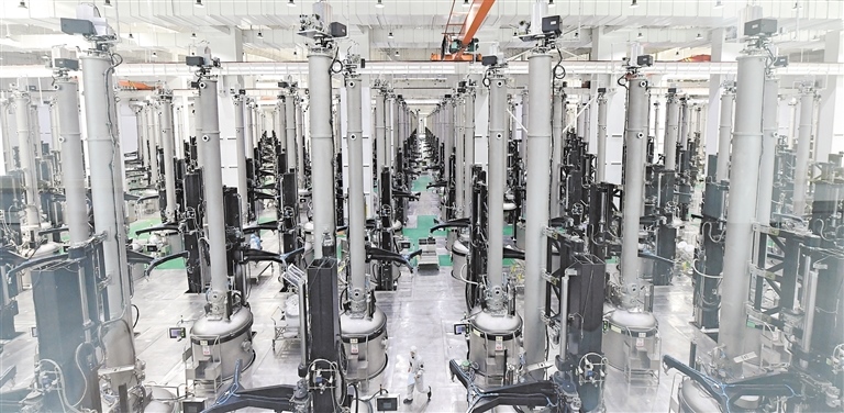 “這個(gè)車(chē)間出來(lái)的單晶硅棒是用在光伏領(lǐng)域的,切成硅片后,應(yīng)用于下游的電池片、組件、電站?!眱?nèi)蒙古中環(huán)晶體材料有限公司技術(shù)總監(jiān)王林告訴記者。