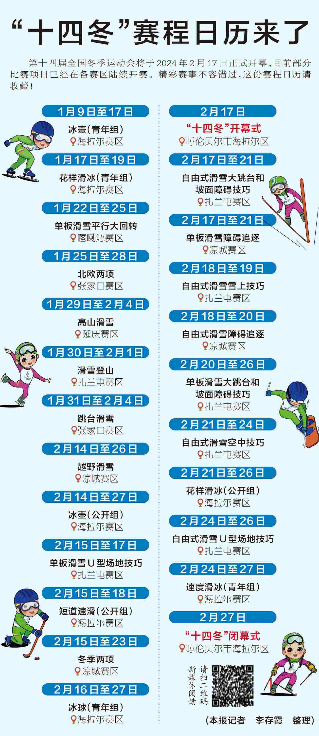 第十四屆全國冬季運動會將于2024年2月17日正式開幕,目前部分比賽項目已經(jīng)在各賽區(qū)陸續(xù)開賽。精彩賽事不容錯過,這份賽程日歷請收藏!