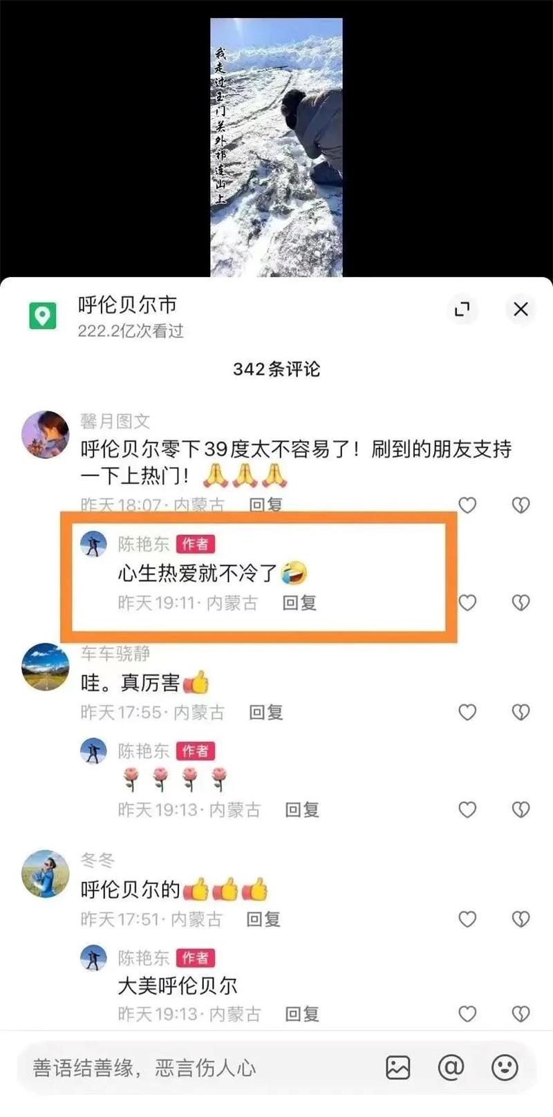 而他回復(fù):“心生熱愛(ài)就不冷了”