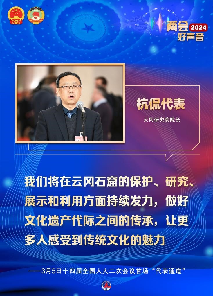 一直關(guān)注石窟風(fēng)化問(wèn)題的云岡研究院院長(zhǎng)杭侃代表,講述了進(jìn)入第39窟的一個(gè)特殊“操作”——爬到頂層時(shí)工作人員會(huì)把安全帽摘掉,半蹲在腳手架上干活,生怕碰到“像酥餅一層一層”風(fēng)化的頂部。