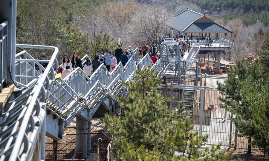 動(dòng)物園里享受春日的游客