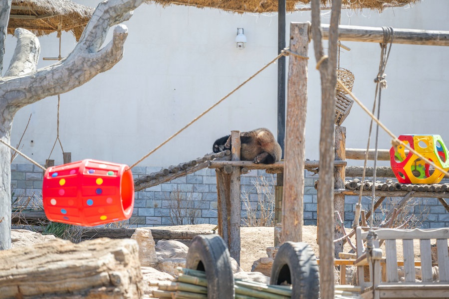 動(dòng)物園里正在睡覺(jué)的大熊貓