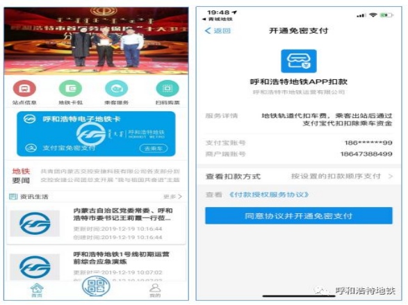 呼和浩特地鐵主流非現(xiàn)金支付乘車軟件