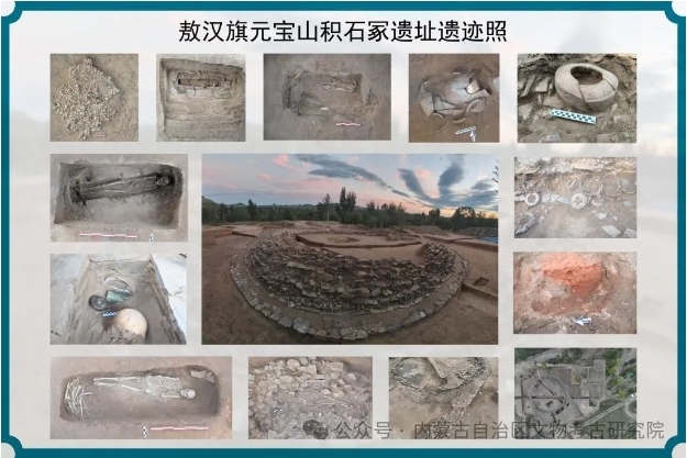 2023年11月,位于赤峰市敖漢旗下洼鎮(zhèn)元寶山積石冢被盜,當(dāng)?shù)匚奈锕芾聿块T上報后,2024年初內(nèi)蒙古自治區(qū)文物考古研究院經(jīng)自治區(qū)文物局批準(zhǔn),以搶救性考古發(fā)掘向國家文物局申請并得以批準(zhǔn)。4月底,組隊對該地點及周邊開展調(diào)查并進(jìn)行了勘探。5月正式啟動發(fā)掘,截止目前已明確該地點為一處集墓葬建筑與祭祀建筑一體的紅山文化遺存。也是目前所知內(nèi)蒙古自治區(qū)唯一的一處南方北圓、南壇北冢的紅山文化晚期建筑遺存。