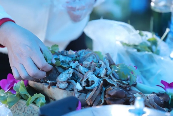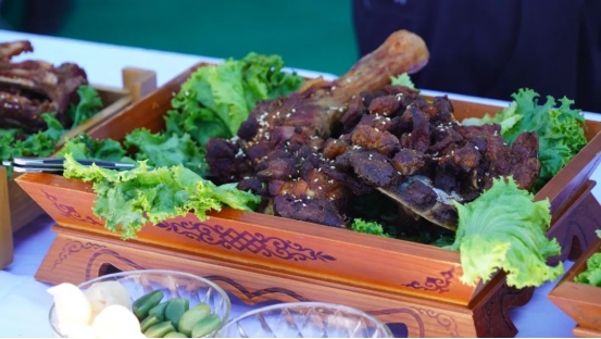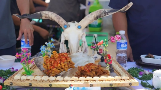 烤全羊、手抓肉、肚包肉……活動(dòng)現(xiàn)場(chǎng),參賽選手們各顯神通,用他們精湛的廚藝為大家呈現(xiàn)了一場(chǎng)全羊盛宴。來(lái)自不同地區(qū)的36道羊肉系列菜,現(xiàn)場(chǎng)烹飪制作并供嘉賓、游客品嘗,評(píng)委從每道菜品的食材、烹飪方法、口味色澤、擺盤(pán)設(shè)計(jì)等方面入手,進(jìn)行現(xiàn)場(chǎng)打分排名。一道道精心烹飪的美食香飄四座,激發(fā)了現(xiàn)場(chǎng)觀眾的食欲。大家紛紛圍上前來(lái),爭(zhēng)相品嘗?!把蛉膺€有這么多的做法,真是讓人大開(kāi)眼界?!薄疤贸粤?,羊肉都很鮮美!”現(xiàn)場(chǎng)游客無(wú)一不發(fā)出贊嘆。
