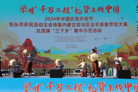 同時(shí),作為2024 年中國(guó)農(nóng)民豐收節(jié)包頭市慶祝活動(dòng)主會(huì)場(chǎng),廣大農(nóng)牧民朋友也在達(dá)茂旗套馬溝田園綜合體共赴了一場(chǎng)關(guān)于土地與希望的“豐收之約”。烏蘭牧騎的歌舞表演;模范代表種植大王盧永旺、養(yǎng)馬能手其木德的經(jīng)驗(yàn)分享;別開(kāi)生面的烤全羊開(kāi)羊儀式 ;新時(shí)代農(nóng)牧民科普宣講;金融助農(nóng)宣傳;農(nóng)牧民免費(fèi)義診;充滿(mǎn)生活氣息的“村趣”運(yùn)動(dòng)會(huì),整體活動(dòng)展現(xiàn)出廣大農(nóng)牧民的幸福生活和豐富的鄉(xiāng)村文化,贏得了現(xiàn)場(chǎng)觀眾陣陣掌聲和歡呼聲?! ?/p>