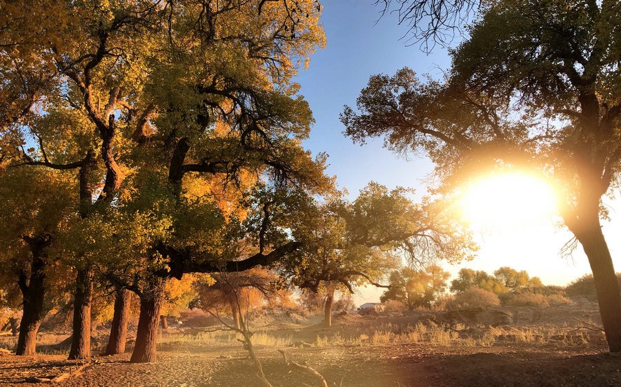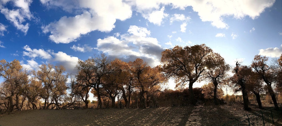 秋季的額濟納風景如畫