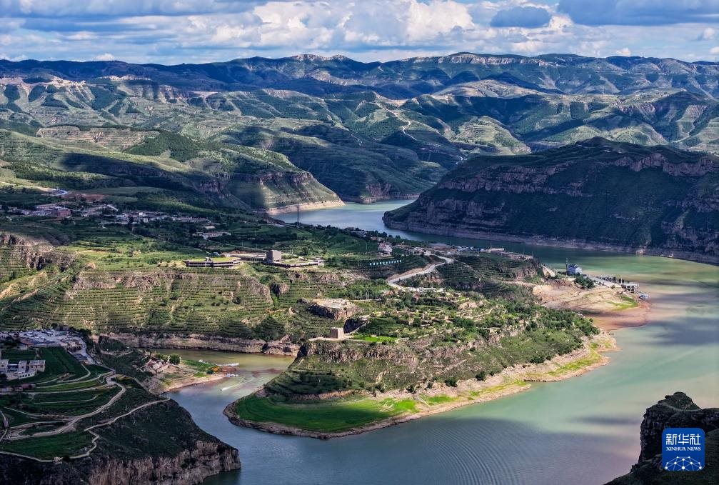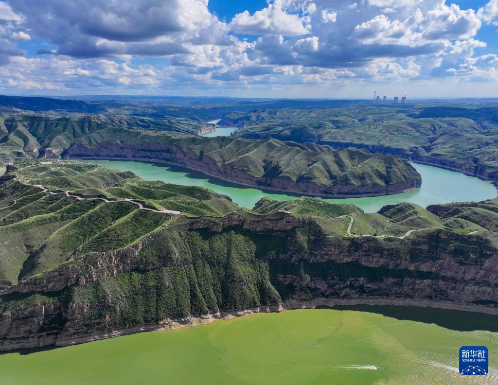 ??這是8月12日拍攝的黃河老牛灣風(fēng)光(無(wú)人機(jī)照片)。
