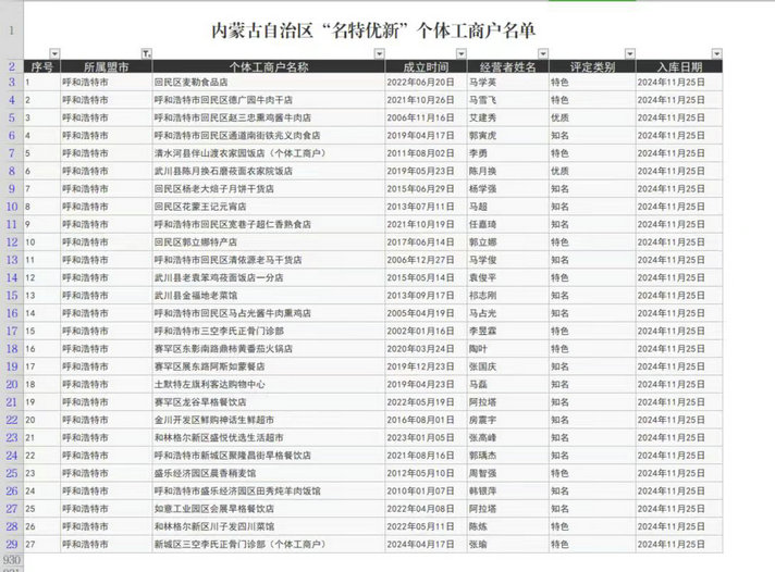 北疆新聞呼和浩特2月19日消息(記者 張?chǎng)?近日,呼和浩特市首批27戶個(gè)體工商戶獲評(píng)全國(guó)“名特優(yōu)新”個(gè)體工商戶,覆蓋餐飲、批發(fā)零售、食品加工、居民服務(wù)等多個(gè)行業(yè)領(lǐng)域。