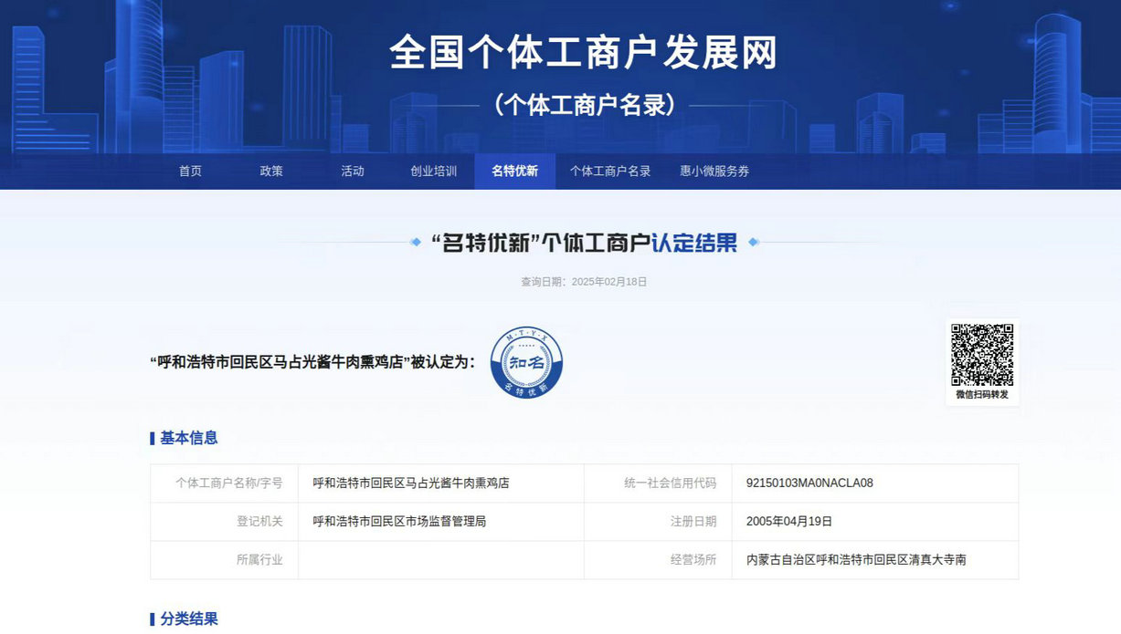 去年,呼和浩特市市場(chǎng)監(jiān)管局等16個(gè)市級(jí)部門(mén)聯(lián)合制定實(shí)施《呼和浩特市個(gè)體工商戶分型分類實(shí)施方案(試行)》,開(kāi)展“名特優(yōu)新”個(gè)體工商戶申報(bào)和推薦工作。通過(guò)線上線下雙渠道,利用個(gè)體工商戶服務(wù)月活動(dòng),向廣大個(gè)體工商戶普及申報(bào)政策和流程,鼓勵(lì)符合條件的個(gè)體工商戶參與申報(bào)。通過(guò)材料審核、走訪核實(shí)、征求意見(jiàn)、評(píng)審認(rèn)定、信息公示等程序,經(jīng)區(qū)縣、市、自治區(qū)逐級(jí)復(fù)核上報(bào),呼和浩特市首批認(rèn)定全國(guó)“名特優(yōu)新”的27戶個(gè)體工商戶已完成入庫(kù)(其中“知名”15戶、“特色”10戶、“優(yōu)質(zhì)”2戶),被認(rèn)定的個(gè)體工商戶可享受由國(guó)家、自治區(qū)、市出臺(tái)的相關(guān)扶持培育政策。