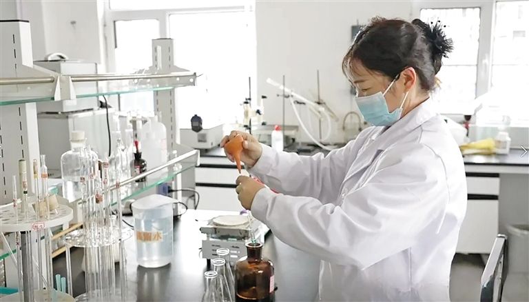 內(nèi)蒙古潔泰諾生物科技有限公司質(zhì)檢中心工作人員進行取樣分析。楊麗芳 攝