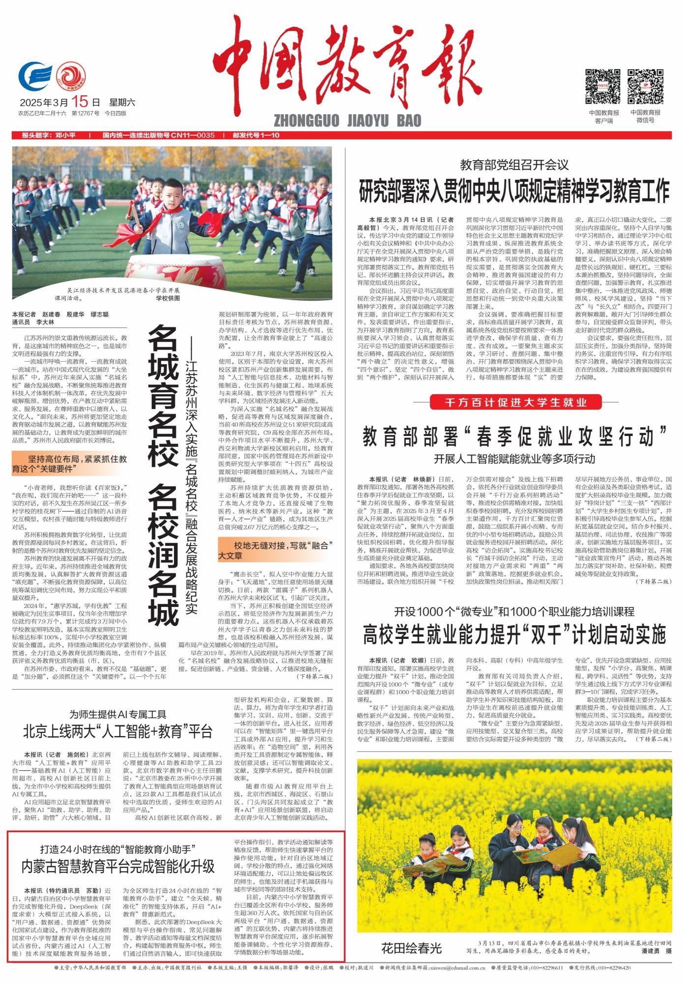 《中國(guó)教育報(bào)》(2025年3月15日1版)