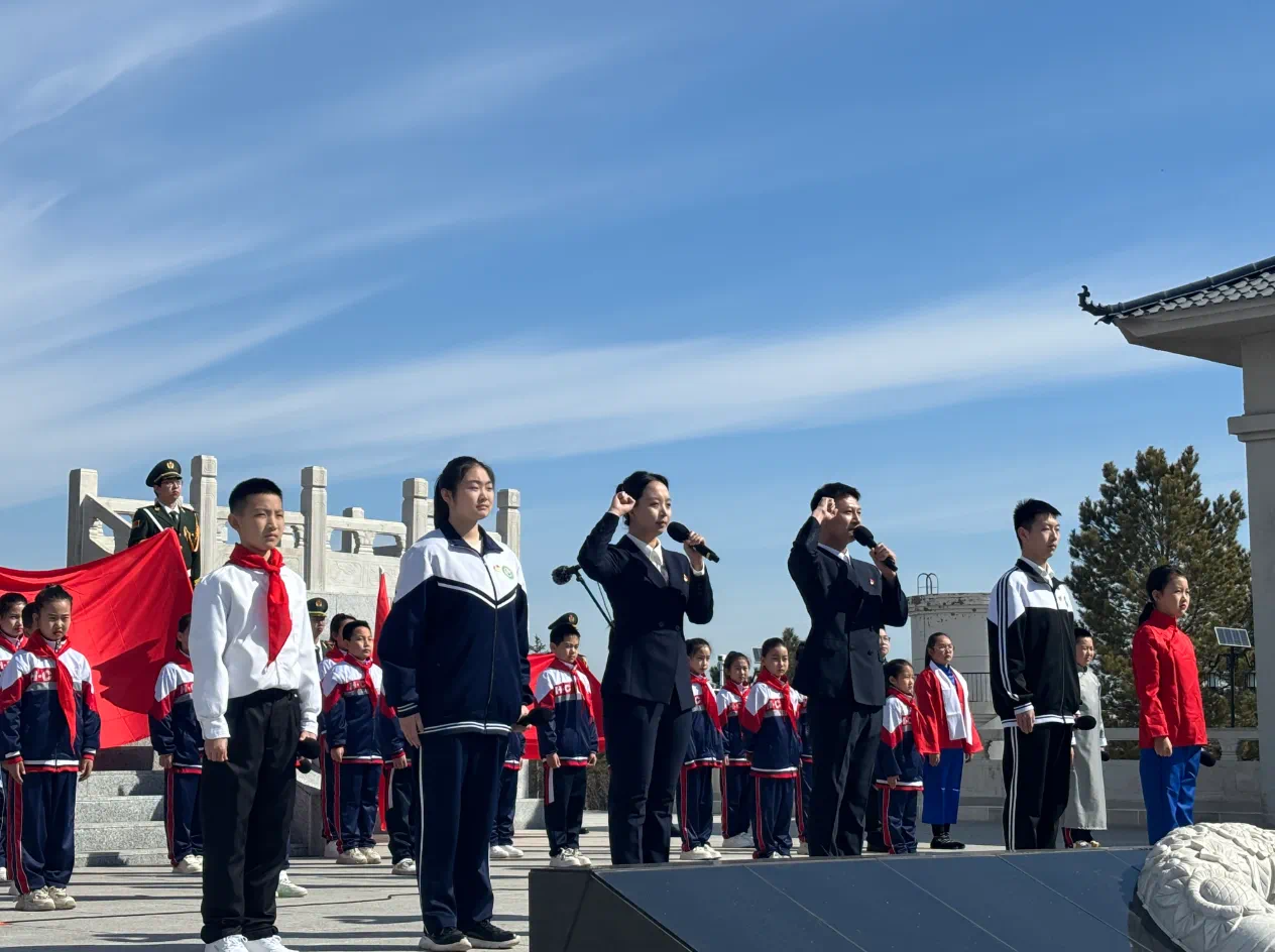 在赤峰市林西縣五十家子鎮(zhèn)烈士陵園,全縣各地黨員、志愿者以及五十家子鎮(zhèn)寄宿制小學(xué)師生代表莊嚴(yán)肅立,齊聲高唱國歌,表達(dá)對革命先烈的深切緬懷。
