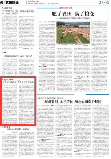 2025年4月3日,《農(nóng)民日報》第6版刊發(fā)題為《內(nèi)蒙古扎魯特旗:加快鹽堿地改造 筑牢糧食安全根基》的文章,報道了近年來,內(nèi)蒙古自治區(qū)通遼市扎魯特旗圍繞“向鹽堿地要糧,讓荒原變良田”的目標(biāo),加大鹽堿地治理力度,不斷挖掘鹽堿地開發(fā)利用價值,把工程措施、生物措施和化學(xué)改良措施有機結(jié)合起來,因地制宜、綜合治理,不斷拓展農(nóng)業(yè)耕地資源,激活鹽堿地“潛在糧倉”資源,實現(xiàn)鹽堿地資源的系統(tǒng)改良和高效利用。