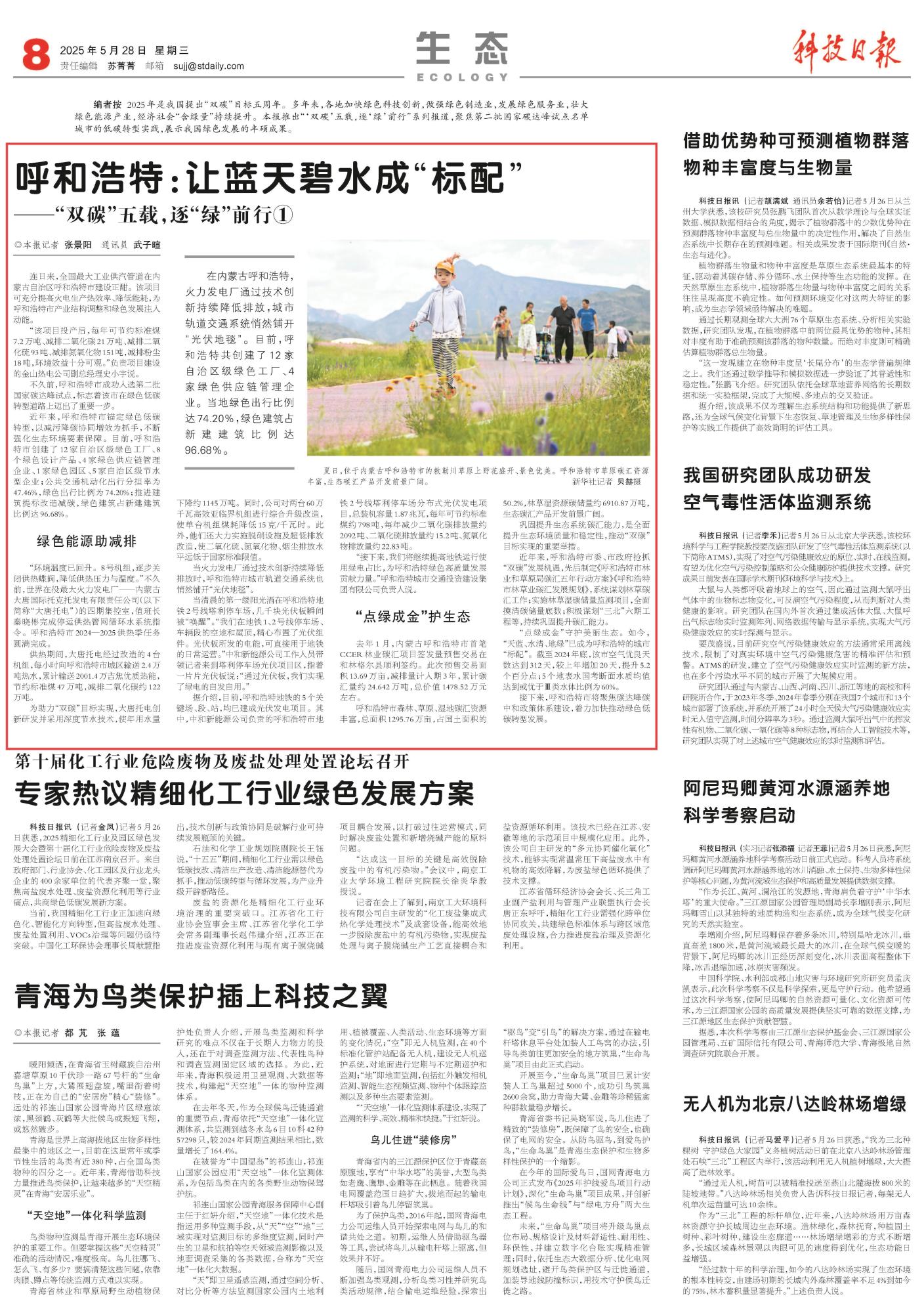 2025年5月28日,《科技日?qǐng)?bào)》第8版刊發(fā)了《呼和浩特:讓藍(lán)天碧水成“標(biāo)配”——“雙碳”五載,逐“綠”前行①》的文章,報(bào)道了內(nèi)蒙古呼和浩特“點(diǎn)綠成金”守護(hù)美麗生態(tài)。火力發(fā)電廠通過(guò)技術(shù)創(chuàng)新持續(xù)降低排放,城市軌道交通系統(tǒng)悄然鋪開(kāi)“光伏地毯”?!疤焖{(lán)、水清、地綠”已成為呼和浩特的城市“標(biāo)配”。