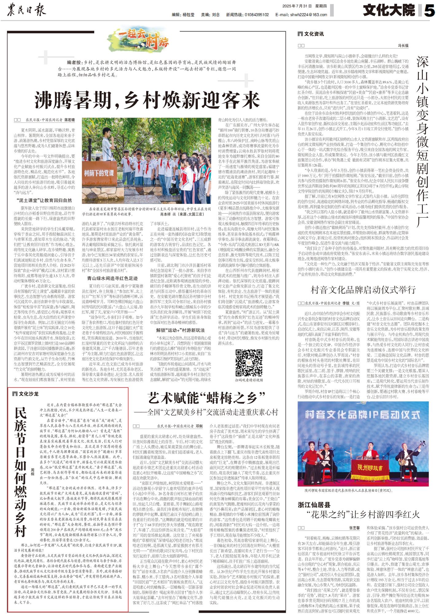 2025年7月31日,《農民日報》第5版刊發(fā)題為《民族節(jié)日如何燃動鄉(xiāng)村》的文章,報道了近日,在內蒙古錫林郭勒盟舉辦的“那達慕”大會沖上熱搜榜,對此,不少網友熱評道:“人生一定要來一次‘那達慕’大會!”?!澳沁_慕”大會的成功并非偶然。近年來,許多少數(shù)民族節(jié)日被廣大網友看見,成為撬動流量的“密碼”,將民族風情展現(xiàn)得淋漓盡致。