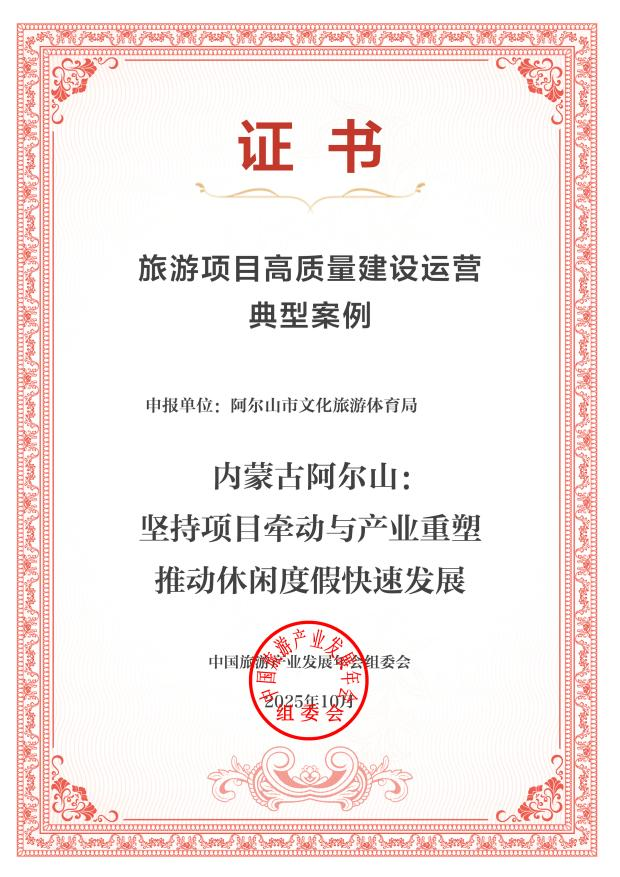 阿爾山市“堅持項目牽動與產(chǎn)業(yè)重塑推動休閑度假快速發(fā)展”案例成功入選2025旅游項目高質(zhì)量建設(shè)運營典型案例。