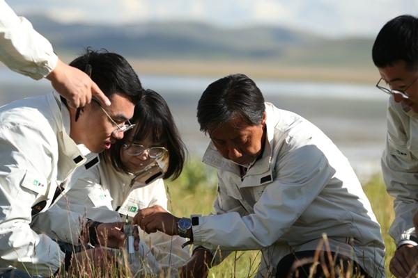 馬騰帶領(lǐng)團(tuán)隊(duì)在內(nèi)蒙古錫林郭勒大草原采集自然發(fā)酵乳。左三為馬騰。受訪者供圖