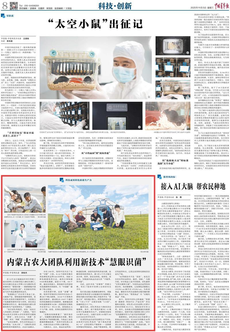 2025年11月5日,《中國(guó)青年報(bào)》第8版刊發(fā)題為《內(nèi)蒙古農(nóng)大團(tuán)隊(duì)利用新技術(shù)“慧眼識(shí)菌”》的文章,報(bào)道了在10月28日福建泉州舉行的第三屆全國(guó)博士后創(chuàng)新創(chuàng)業(yè)大賽總決賽上,來自內(nèi)蒙古農(nóng)業(yè)大學(xué)博士后馬騰團(tuán)隊(duì)的參賽項(xiàng)目“慧眼識(shí)菌——數(shù)據(jù)賦能中國(guó)菌邁向產(chǎn)業(yè)強(qiáng)國(guó)之路”,在創(chuàng)新組的農(nóng)業(yè)與現(xiàn)代食品賽道獲得金獎(jiǎng)。