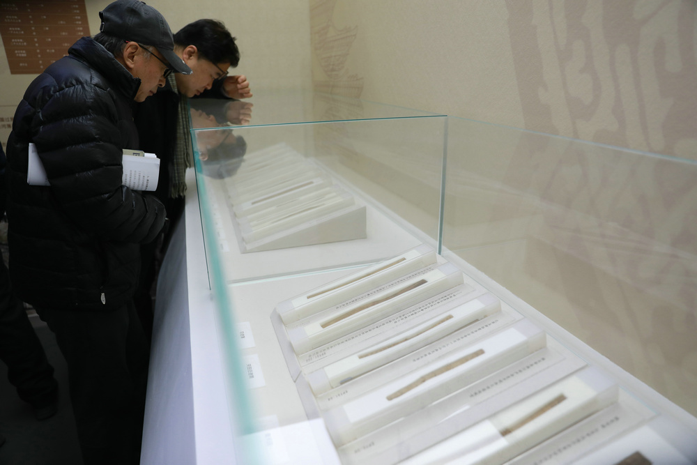 觀眾參觀“‘簡(jiǎn)’讀居延—居延遺址出土漢簡(jiǎn)專題展”
