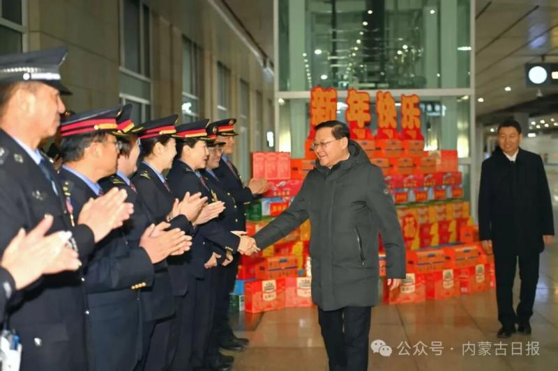 春節(jié)將至,首府的街頭張燈結彩,處處洋溢著喜慶祥和的節(jié)日氛圍。王偉中一行首先來到賽罕區(qū)一中隊交警執(zhí)勤崗點,親切慰問正在執(zhí)勤的民警,送上新春美好祝福,感謝大家的默默堅守和無私付出。王偉中叮囑大家注意防寒保暖,以良好狀態(tài)守護城市平安暢通。在萬正廣場環(huán)衛(wèi)站,王偉中一行看望慰問辛勤工作的環(huán)衛(wèi)工人。王偉中說,你們是城市的“美容師”,每天起早貪黑、風雨無阻,用辛勤勞動換來了城市的清潔美麗,大家辛苦了。有關部門要多關心他們的工作和生活,細化關愛舉措,健全保障機制,在全社會營造尊重環(huán)衛(wèi)工人、珍愛生活環(huán)境的良好氛圍。隨后,王偉中一行來到呼和浩特火車東站,仔細詢問春運期間人流車流、安全保障等情況。王偉中強調要精準把握春節(jié)群眾出行規(guī)律,加強運力調配、客流疏導和秩序維護,深入排查整治安全隱患,切實提升服務質量,讓群眾出行更安全、更舒心。
