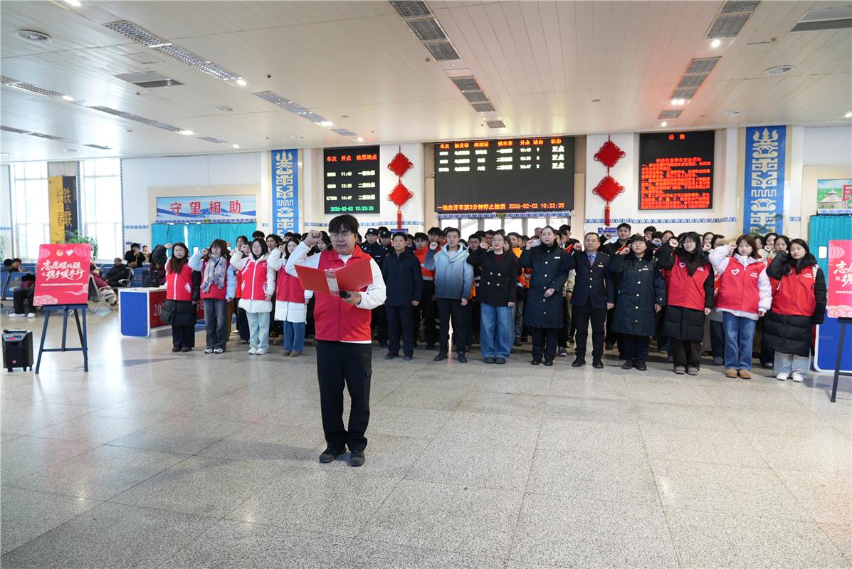 “阿姨您慢點,檢票口在二樓,行李我來幫您拎?!?9歲的杜鐵毅快步上前,穩(wěn)穩(wěn)接過老年旅客手中沉甸甸的編織袋。連日值守讓他的聲音帶著一絲忙碌后的沙啞,眼里的熱忱卻絲毫未減。作為興安盟向陽環(huán)保青年志愿者協(xié)會會長,這個春節(jié),他和志愿者們幾乎天天“泡”在車站,從進站引導、行李搬運到車次咨詢、換乘指引,用周到細致的服務,為奔波的歸途人送上新春里最真切的暖意。