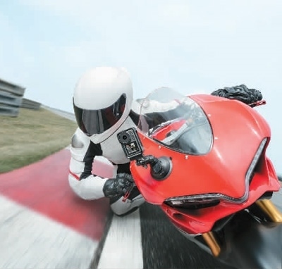 用戶在高速行駛的摩托車上使用大疆運(yùn)動(dòng)相機(jī)進(jìn)行第一視角拍攝。受訪企業(yè)供圖
