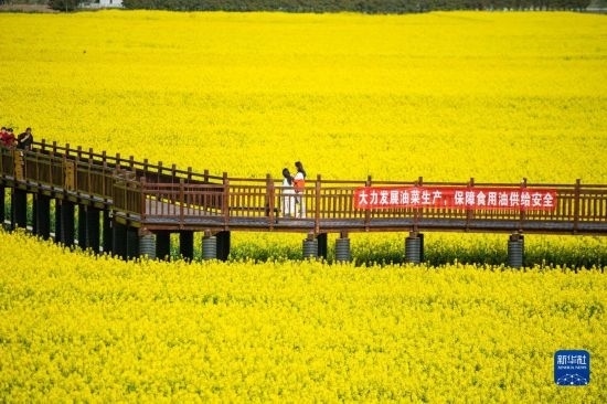 近日,湖南省常德市鼎城區(qū)十美堂鎮(zhèn)種植的數(shù)萬(wàn)畝油菜花競(jìng)相綻放,金燦燦的油菜花海吸引游客前來(lái)賞花游玩。近年來(lái),十美堂鎮(zhèn)將油菜產(chǎn)業(yè)與文旅產(chǎn)業(yè)深度融合,帶動(dòng)鄉(xiāng)村餐飲、民宿等產(chǎn)業(yè)發(fā)展,助力鄉(xiāng)村振興。