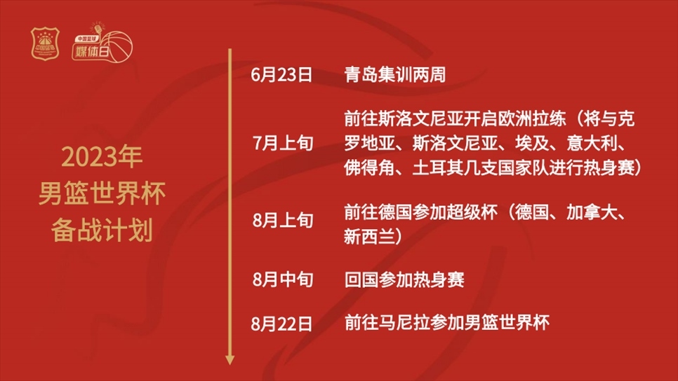 談到中國(guó)男籃備戰(zhàn)世界杯的具體規(guī)劃時(shí),徐濟(jì)成表示:“球隊(duì)將于6月23日在青島開啟為期兩周的集訓(xùn);7月上旬前往斯洛文尼亞開啟歐洲拉練,將與克羅地亞、斯洛文尼亞、埃及、意大利、佛得角、土耳其幾支國(guó)家隊(duì)進(jìn)行熱身賽;8月上旬前往德國(guó)參加超級(jí)杯,對(duì)手包括德國(guó)、加拿大、新西蘭;8月中旬回國(guó)參加1-2場(chǎng)熱身賽后,將前往馬尼拉參加男籃世界杯?!?/p>