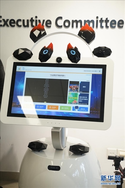 “蓉寶”機(jī)器人將作為大運(yùn)會(huì)的特殊“服務(wù)生”。有人臉識(shí)別、引導(dǎo)、翻譯等功能,同時(shí)還是世界上首款帶有應(yīng)急功能的機(jī)器人,內(nèi)部配備了急救包、AED心臟除顫器等醫(yī)療應(yīng)急工具,使用者可通過手機(jī)在場(chǎng)館內(nèi)隨時(shí)呼叫。圖片來源:新華網(wǎng)