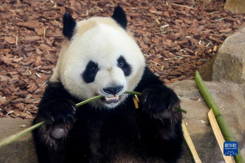 2023年4月24日,在成都大熊貓繁育研究基地,成都大運(yùn)會(huì)吉祥物“蓉寶”原型大熊貓“芝麻”迎來了六周歲生日。新華社發(fā)(陳居偉攝)