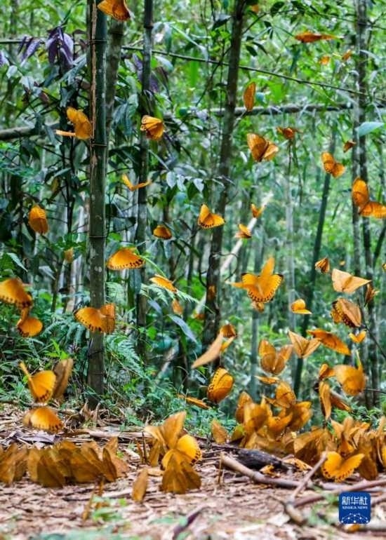 近日,大量箭環(huán)蝶蛹在云南省紅河州金平苗族瑤族傣族自治縣馬鞍底鄉(xiāng)的中國(guó)·紅河蝴蝶谷集中羽化成蝶,形成了一年一度的蝴蝶大爆發(fā)奇觀。