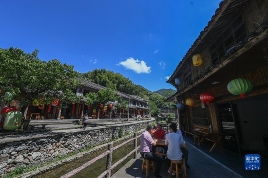 5月30日,游客在布袋坑村的農(nóng)家樂里用餐。