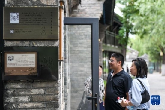 6月25日,游客在濟(jì)南百花洲景區(qū)內(nèi)參觀一處紅色打卡點(diǎn)。