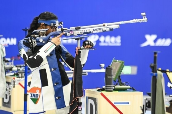 2023年7月29日,印度隊(duì)選手瓦拉里萬以252.5環(huán)的總成績(jī)獲得第31屆世界大學(xué)生夏季運(yùn)動(dòng)會(huì)女子10米氣步槍冠軍。新華社記者 曹祎銘 攝