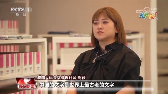 成都大運會獎牌設(shè)計師 周穎:中國的文字是世界上最古老的文字。成都古蜀文明,蜀字最早出現(xiàn)在甲骨文上,所以我們想了一個特別好的概念,用“天府之國”的這個蜀國文化的“蜀”字去展現(xiàn)一個文字從甲骨文、金文、篆書、隸書、楷書、行書、到宋體不斷發(fā)展演變過程。