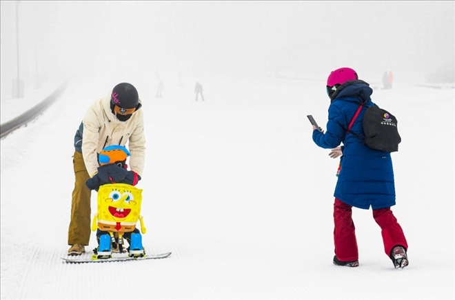在新疆白云國(guó)際滑雪場(chǎng),許秀娟(右)在給愛人和兒子拍照。哈爾濱人許秀娟曾是專業(yè)運(yùn)動(dòng)員,代表國(guó)家隊(duì)拿過(guò)國(guó)際大賽獎(jiǎng)牌。退役后她來(lái)到新疆,在這里她和愛人相識(shí),一起開辦培訓(xùn)機(jī)構(gòu),面向青少年推廣冰雪運(yùn)動(dòng)。