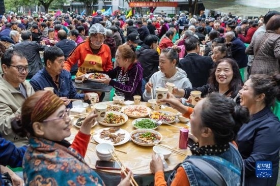 重陽(yáng)節(jié)前夕,重慶市九龍坡區(qū)華巖鎮(zhèn)石龍社區(qū)開展“九九重陽(yáng)節(jié) 濃濃敬老情”主題活動(dòng)。600余位年滿60歲以上的社區(qū)老人共享“長(zhǎng)壽宴”,在歡聲笑語(yǔ)中迎接即將到來(lái)的重陽(yáng)節(jié)。