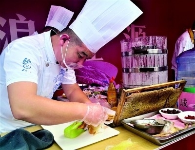 六盤(pán)山下,涇河源鎮(zhèn)冶家村的農(nóng)家樂(lè)進(jìn)行廚藝比拼展示。剡文鑫攝