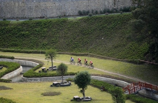10月28日,參賽選手在比賽中。當(dāng)日,第一屆全國學(xué)生(青年)運(yùn)動會男子山地自行車越野賽在廣西南丹縣舉行,貴陽市代表隊選手王勝以1小時4分36秒奪得冠軍,遵義市代表隊選手文靈浩以1小時4分38秒獲得亞軍,成都市代表隊選手解道超以1小時5分12秒獲得季軍。新華社記者 陸波岸 攝