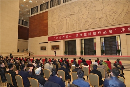 2023年12月12日,由中國(guó)國(guó)家博物館和中共廣東省委宣傳部共同主辦的“河山在望——梁世雄捐贈(zèng)作品展”展覽開(kāi)幕式在中國(guó)國(guó)家博物館舉行。文化和旅游部黨組成員、副部長(zhǎng)盧映川出席并宣布展覽開(kāi)幕。中國(guó)國(guó)家博物館館長(zhǎng)王春法、廣東省委宣傳部常務(wù)副部長(zhǎng)崔朝陽(yáng)、家屬代表容璞老師在開(kāi)幕式上致辭。開(kāi)幕式由中國(guó)國(guó)家博物館黨委書(shū)記楊帆主持。