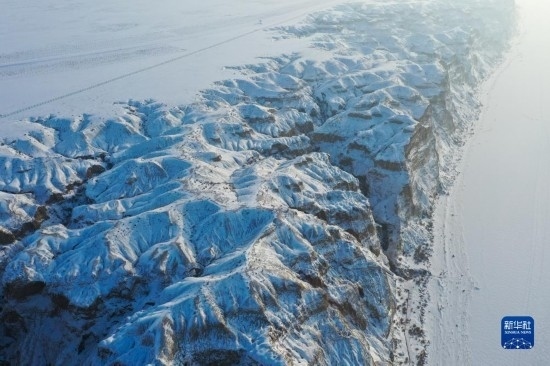 這是在新疆阿勒泰地區(qū)福??h拍攝的海上魔鬼城冬景(12月21日攝,無人機(jī)照片)。
