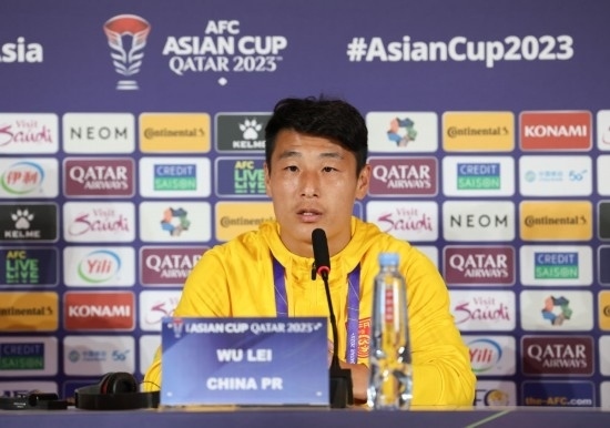 1月16日,中國隊球員武磊在發(fā)布會上。新華社記者 丁汀 攝