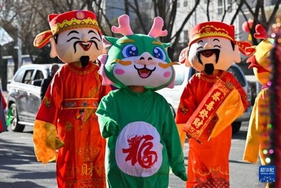 2月17日,表演者在涼城縣街道上巡游演出。
