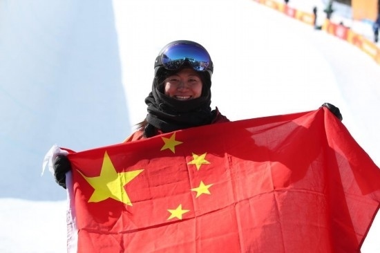 2018年2月13日,中國(guó)選手劉佳宇在比賽后慶祝。當(dāng)日,在2018年平昌冬奧會(huì)單板滑雪女子U型場(chǎng)地技巧決賽中,劉佳宇獲得銀牌。新華社記者費(fèi)茂華攝