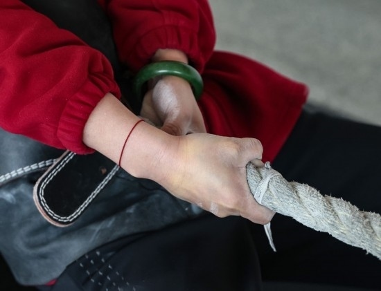 長(zhǎng)期的訓(xùn)練,讓她們每個(gè)人的手掌都經(jīng)歷過(guò)從磨出血泡到反復(fù)脫皮的循環(huán),曾經(jīng)細(xì)嫩的雙手長(zhǎng)滿(mǎn)了老繭。就連訓(xùn)練用的麻繩上,都留有被汗水和血水浸漬的痕跡。