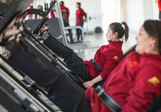 2月29日,鞍鋼集團(tuán)女子拔河隊(duì)隊(duì)員李夢(mèng)梅在進(jìn)行力量訓(xùn)練。新華社記者 龍雷 攝