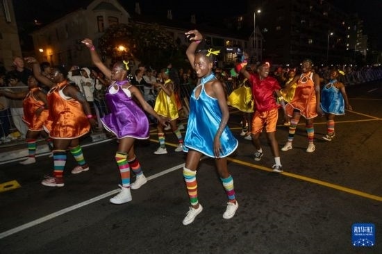 3月16日晚,在南非立法首都開普敦,表演者參加開普敦狂歡節(jié)游行。